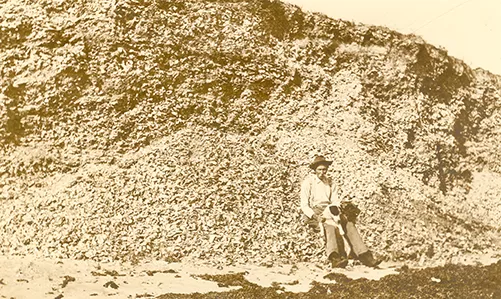 Refuse mounds, or kitchen middens, are primarily sand, black earth, or shells, depending on their locations. Middens of discarded oyster shells are common near the coast. Inland, black earth middens contain dark brown or black soil stained by decayed organic material, such as the remains of animals and marine life. Remnants of ceramics and tools, and objects of art may be included, when made of materials that do not break down in the soil. According to archaeologist Randolph J. Widmer, the kitchen middens of prehistoric people prove that “second only to what is now known as southern France—southern Florida was the most populated area on earth.”